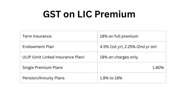 The Goods and Services Tax (GST) is a unified indirect tax that applies to various goods and services—including life insurance. When you pay your LIC premium, a percentage of it goes towards GST based on the type of policy you hold.